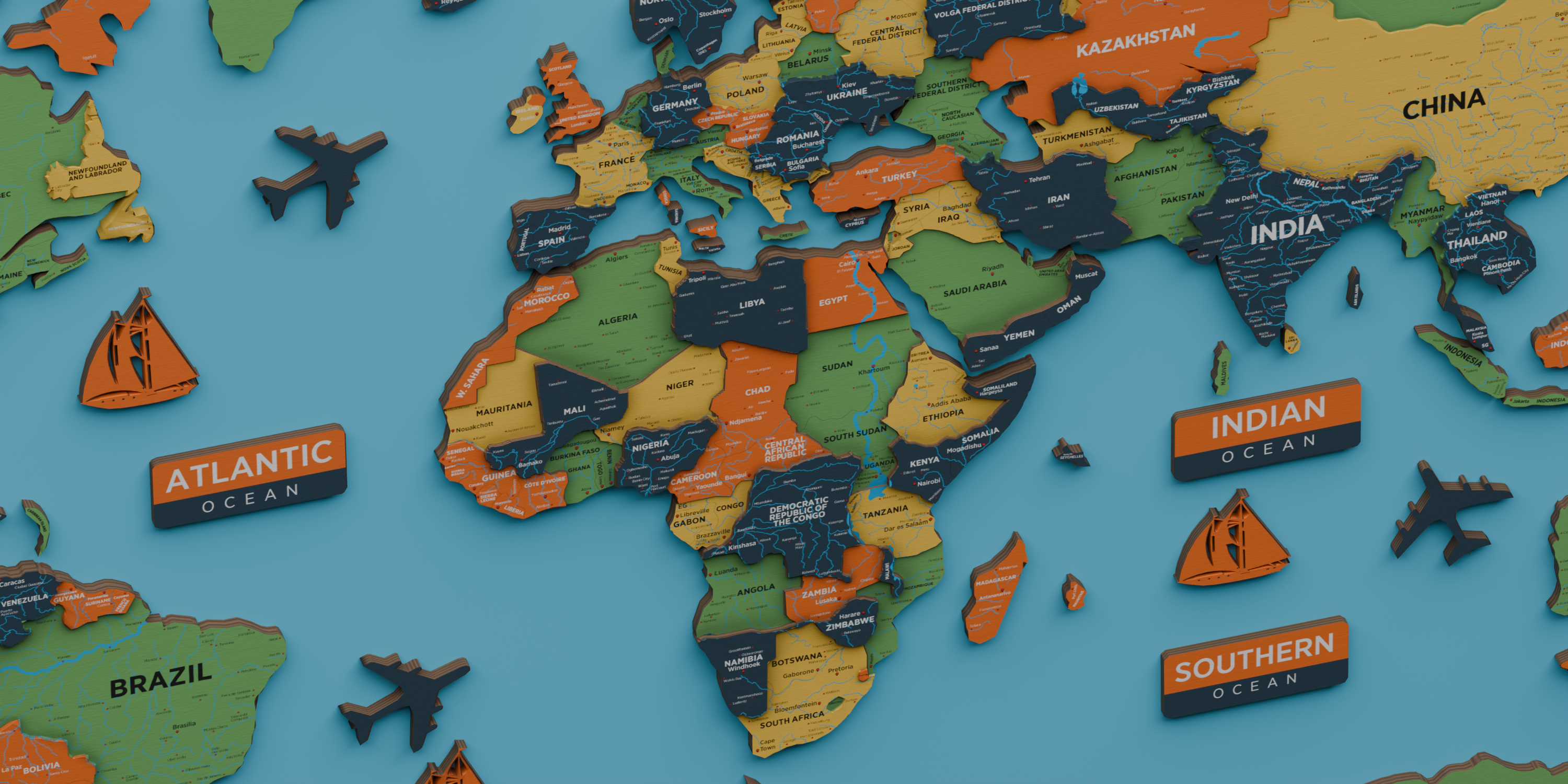 Explore Our 3D Wooden World Maps: Captivating Detail, Sustainable Craftsmanship, Perfect for Every Wall.