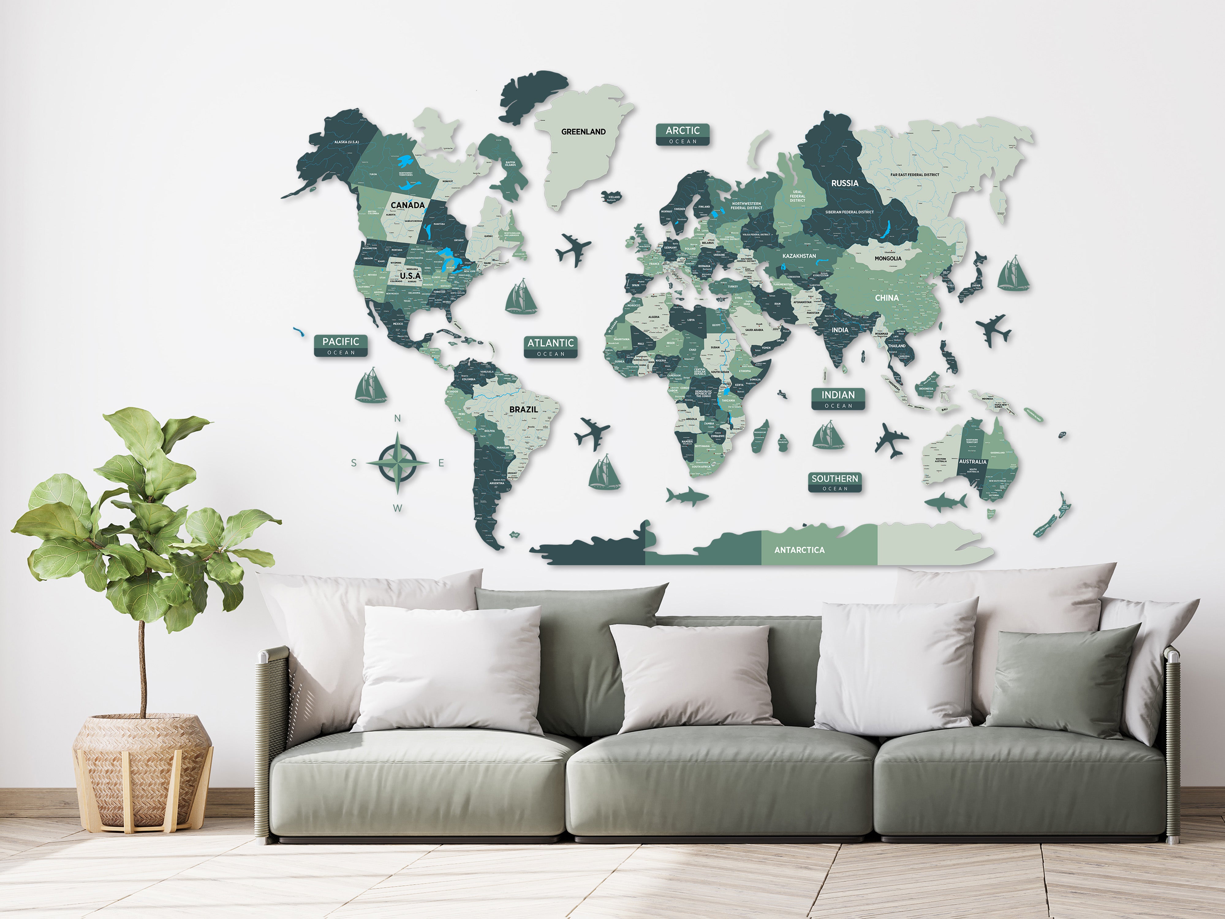 This world map is made from durable, eco-friendly premium plywood, ensuring both sustainability and longevity